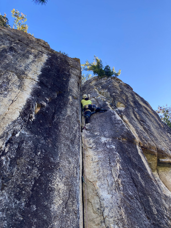 屋根岩一峰東面の三ツ星クラック。 出だしにボルト一本あり。 クラックはハンドバチキキの快適クラ...