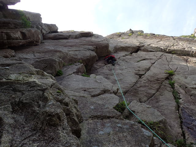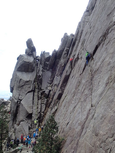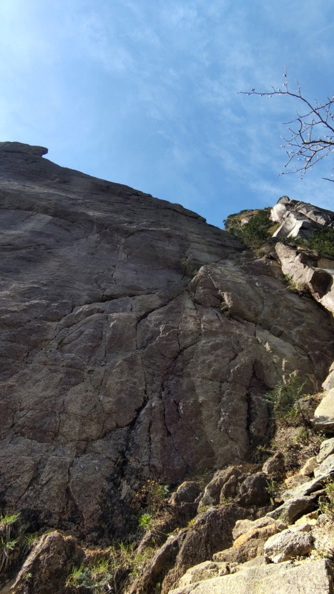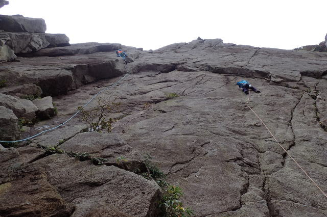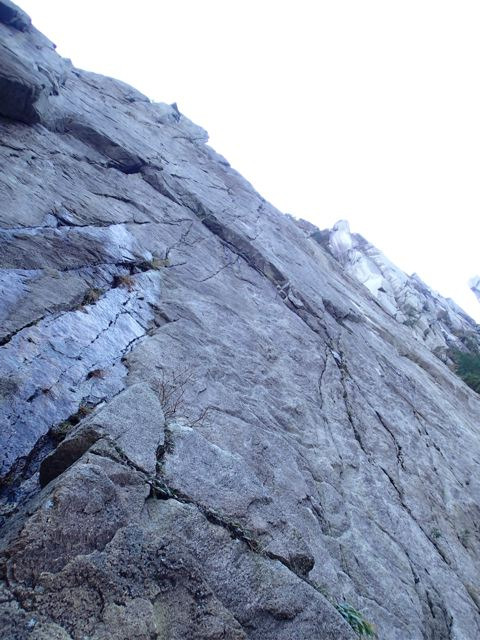 オレンジ色のラインが 右ルート の登攀ラインです。
