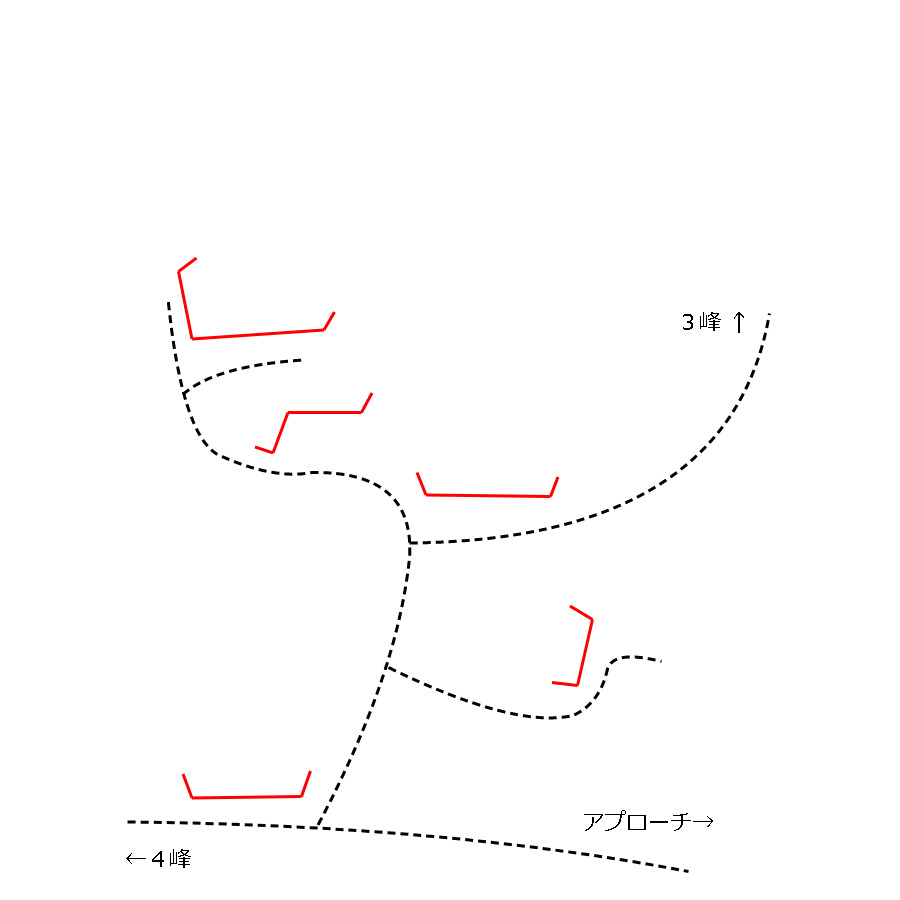 オレンジ色のラインが 草溝右ルート の登攀ラインです。