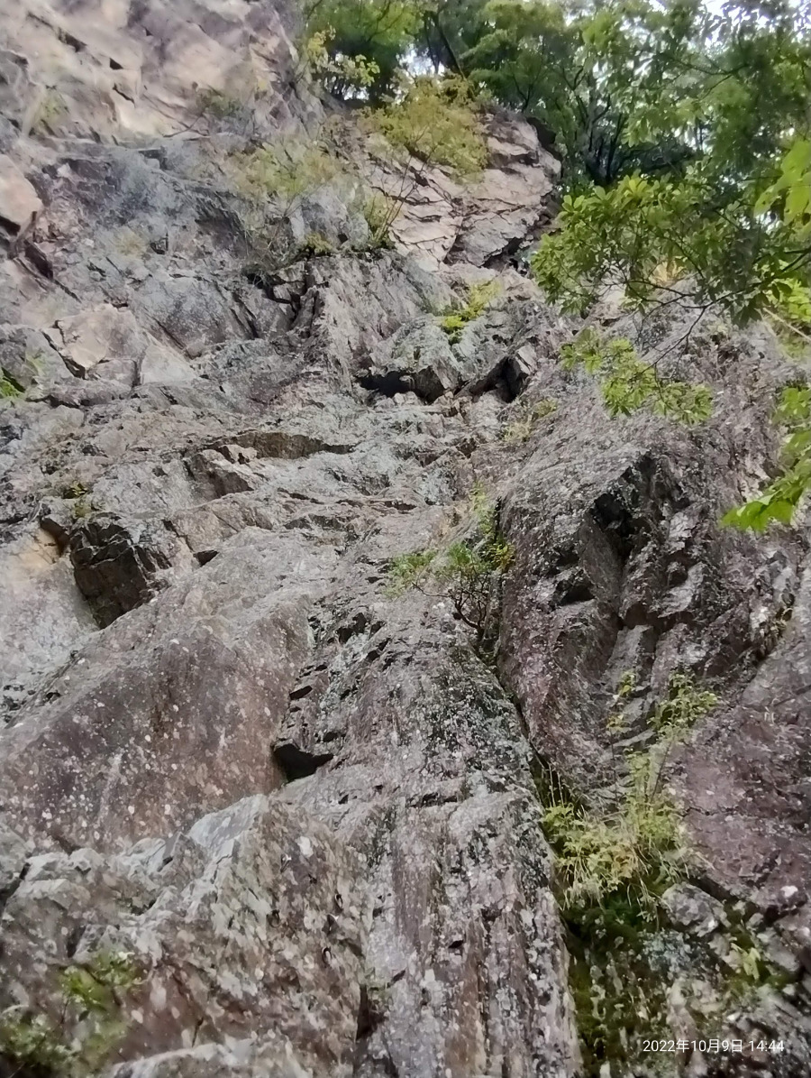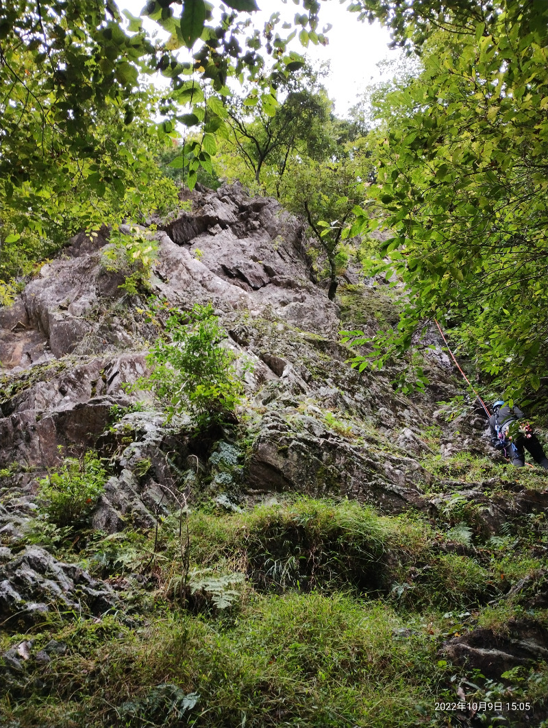 1P:天狗の肩への直登(左)、V- 2P:右ルート・ダブルジェードル、V- 3P:右ルート・右の滑り台、Ⅳ+ おそらくこのルートのことではないかと思います 着いた途端にでかい落石がありま...