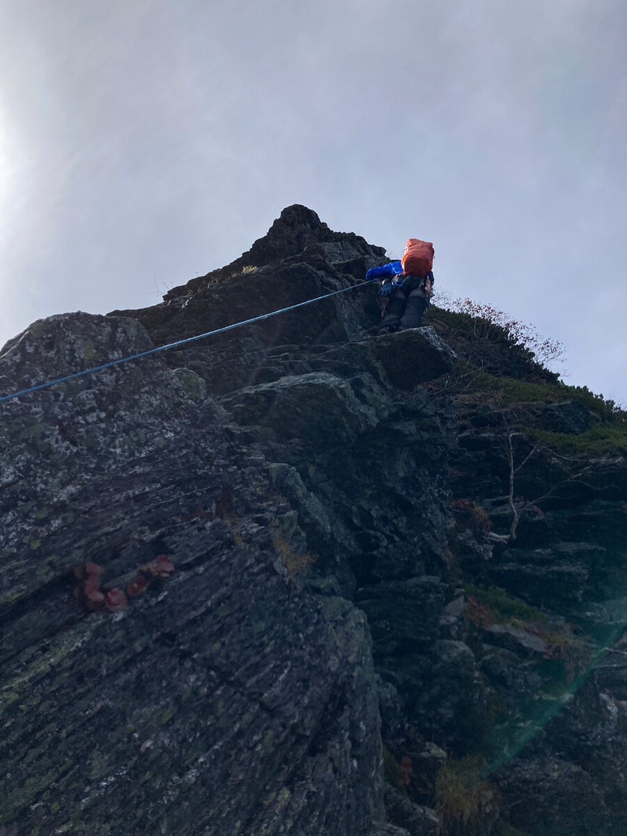 歩いて4尾根に取付けると聞いて登ってみましたが間違えたもよう。 ちょっとしたハング状の部分があり難しそうに思ったが、上手く...