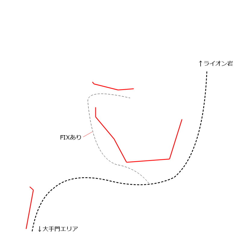 オレンジ色のラインが こいのぼり の登攀ラインです。
