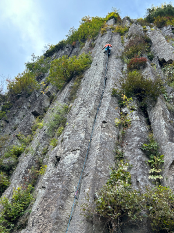最初はハンドだが中間部からフィンガーになり、クラックが閉じてきたところが核心。20mと登り応えもあって楽しい。