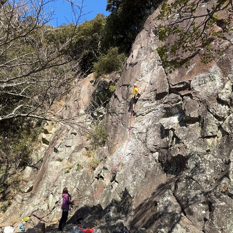 鷲頭山メインウォールの入門的ルート。名前の由来のマンボウに乗ることができます。かわいい名前に反して、しっかり核心があります。...