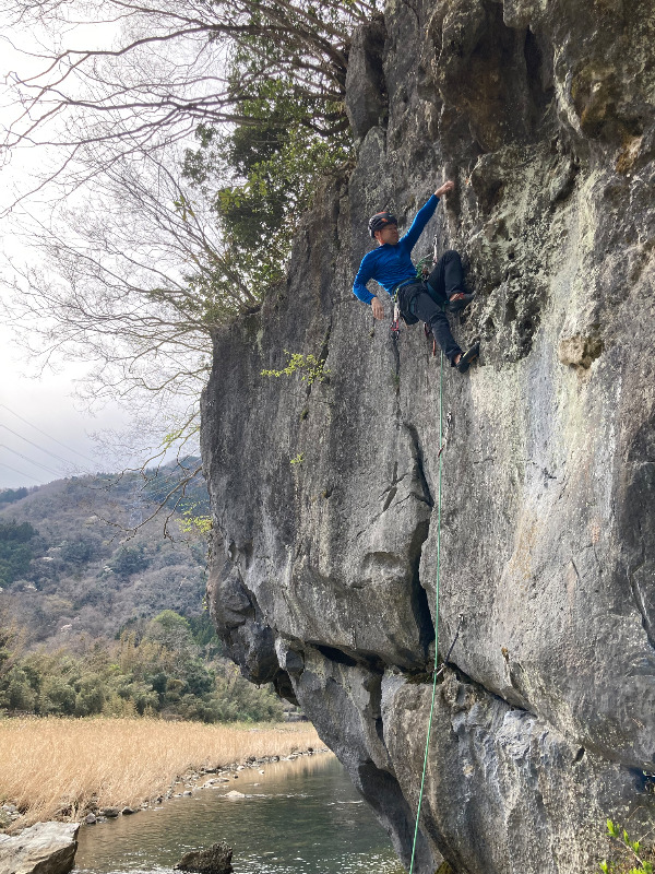 スタートからテラス状バンドに乗り込むまでが少々奮闘的。直下の川の存在もスパイスに感じます。コルネから上部は快適に登れます。