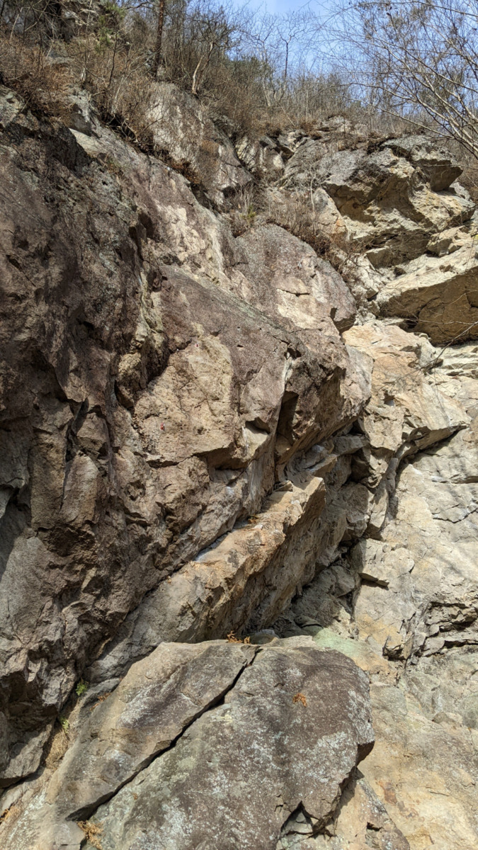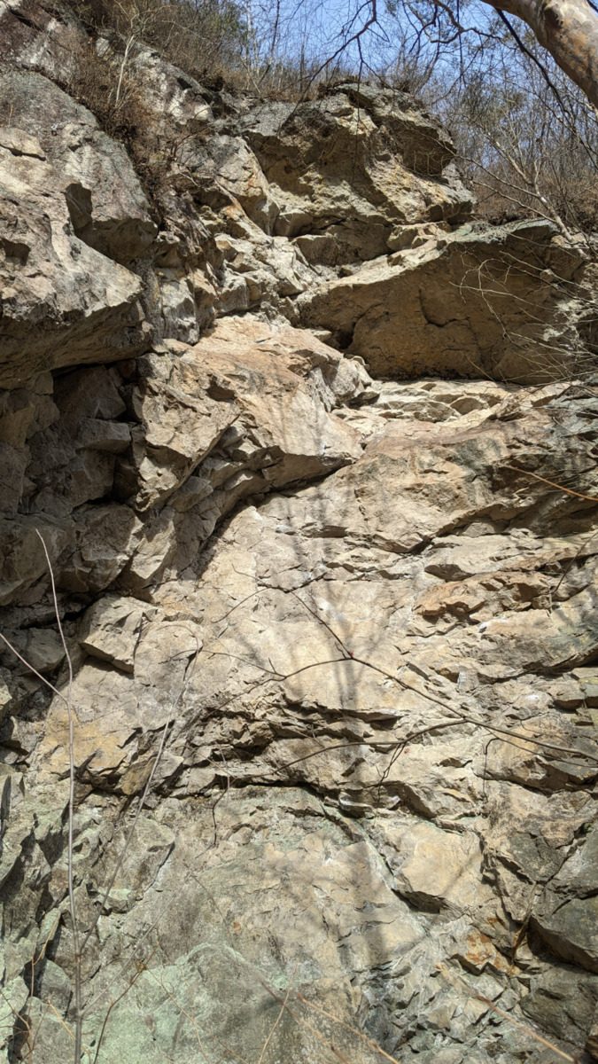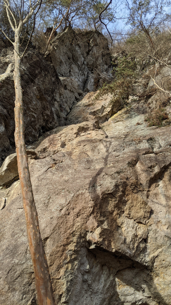 オレンジ色のラインが やもめの日々 の登攀ラインです。