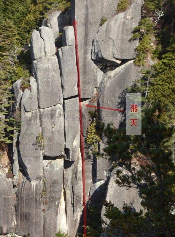 オレンジ色のラインが 飛天 の登攀ラインです。