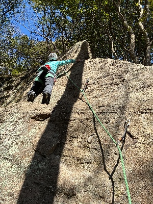 パッと見簡単そうに見えるのに、出だしからバランシー。中間部から抜けるのにホールドが分からないと難しい。、オンサイトしにくいかも?