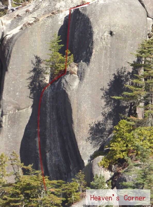 オレンジ色のラインが Heaven's Corner の登攀ラインです。