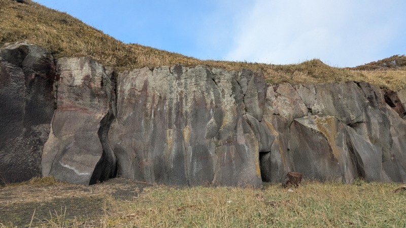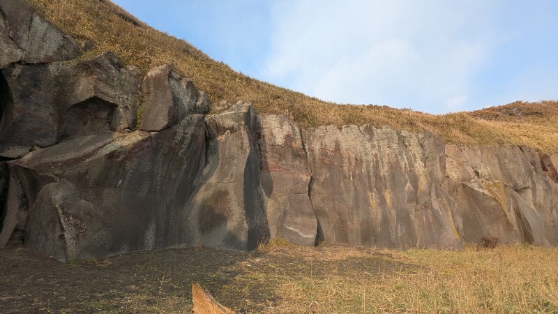 オレンジ色のラインが 無名 の登攀ラインです。