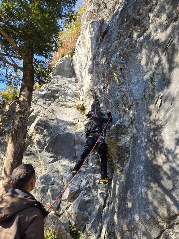 上部のハング越えが核心。ホールドが分からないとオンサイトは厳しいかも。