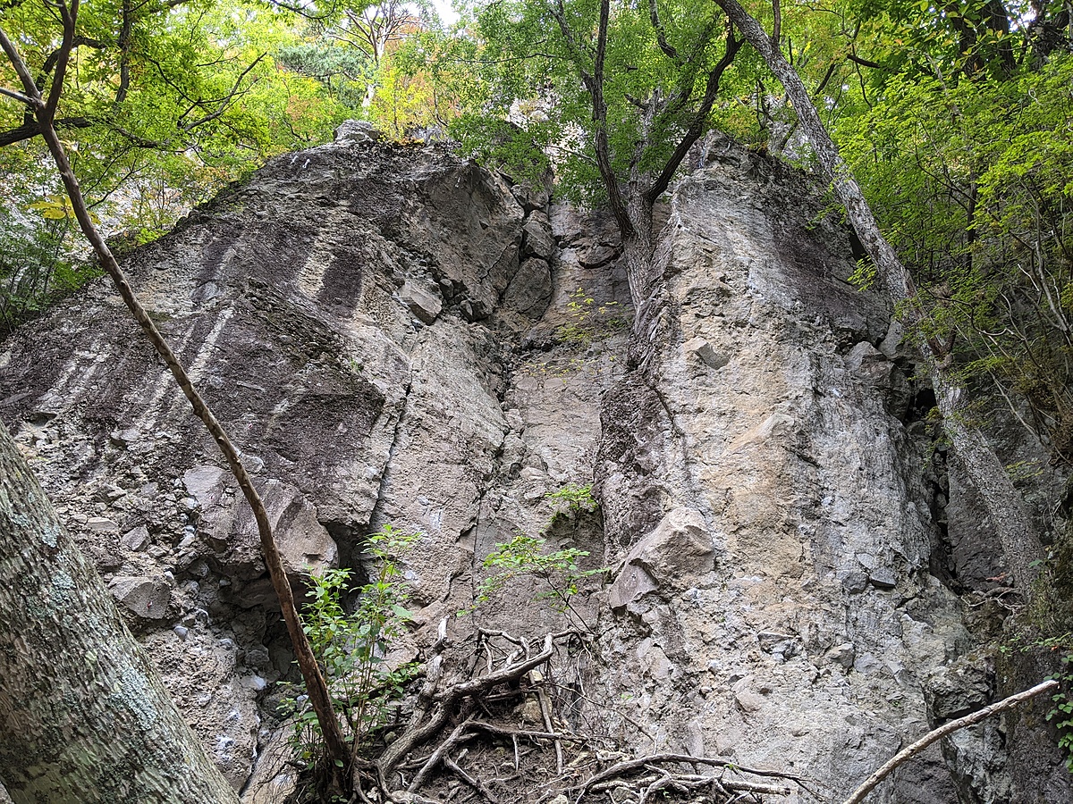 オレンジ色のラインが 蜂の巣 の登攀ラインです。