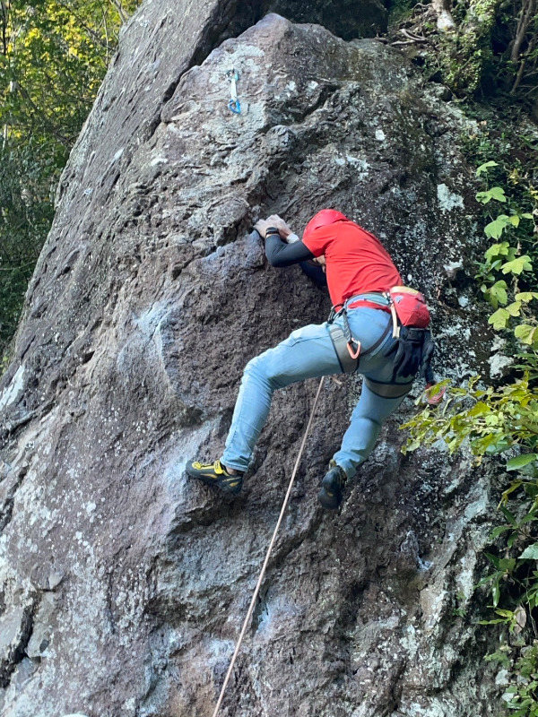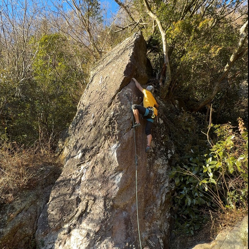 桃源郷の右のはずれにある、独立した岩のボルダーチックなショートルート。 最初の右手カチをうまく使いこなし左上部ガバ取りがで...