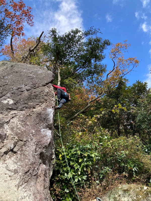 桃源郷の右端にあるルート。ボルト3本の、いかにも短しい系のルートです。