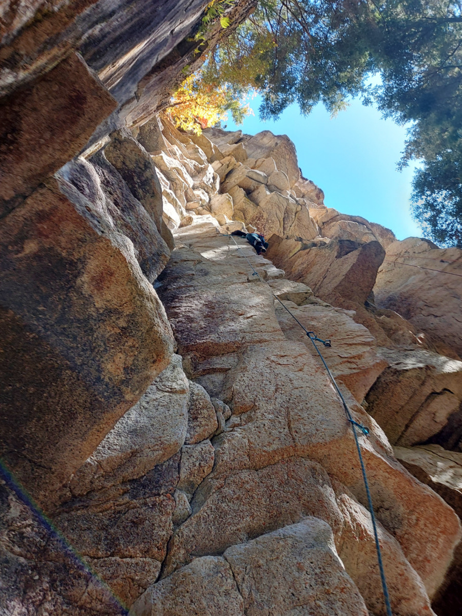 見た目も美しく、登り応えもあり。下部核心なのでビレイヤーは気をつけて下さい。