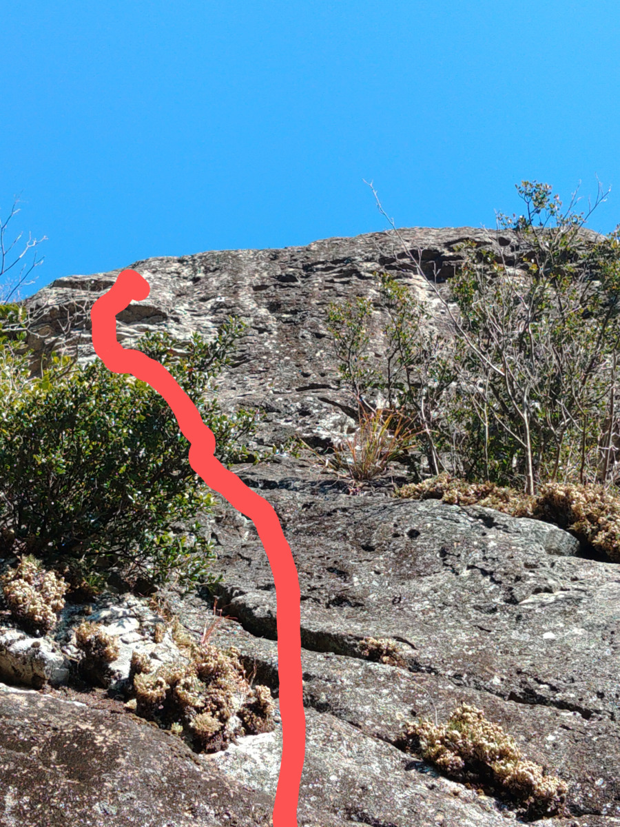 ランナウトするが左のハングを越えて右のポケットで左奥のカンテを取って上の浅いポケットを右手でガス。体を上げる時に左膝を使って左の小ポケットと右のガバで体を上げる。ガスに行くときに左足をなるべく高...