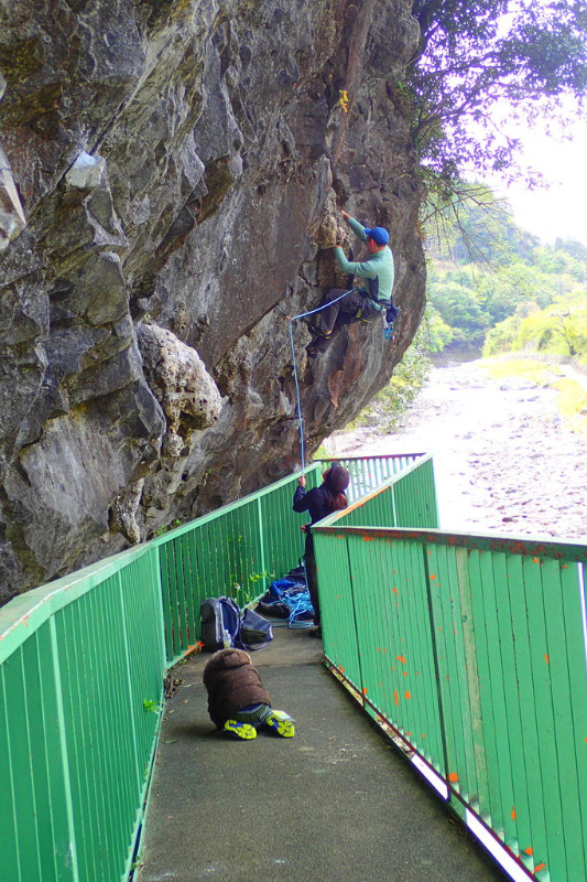 この岩場で貴重な10台ルート。アップで登られることも多いが、もう少し長さがあればよいのですが。