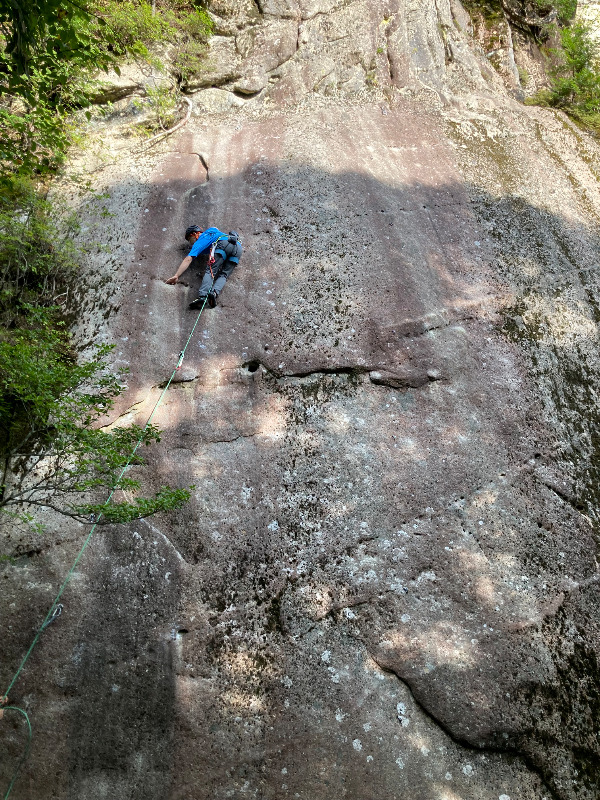 かかり良いポッケを使い足を上げ、スラブを軽快に登らせてもらえて楽しいルート。