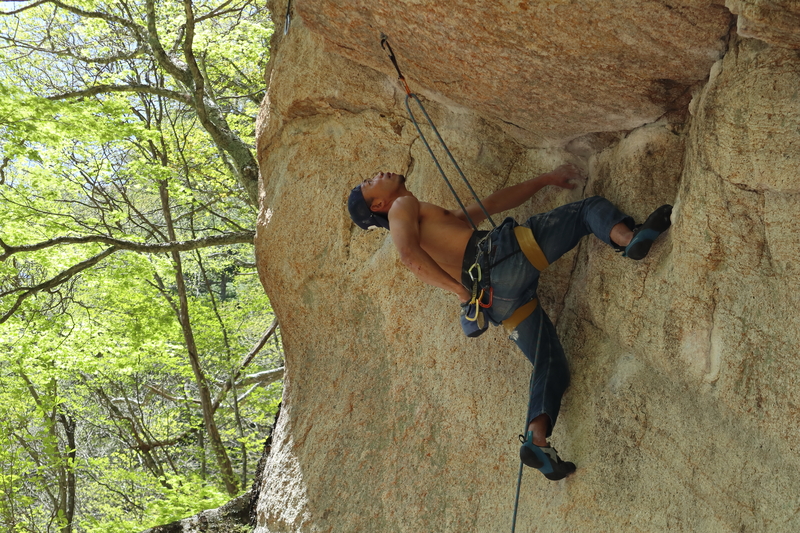 ハング越えボルダー1発の課題。いろいろムーブは試したけど結局全部しんどい。 終了点直下もいい感じ!。パンプした腕で楽しむス...