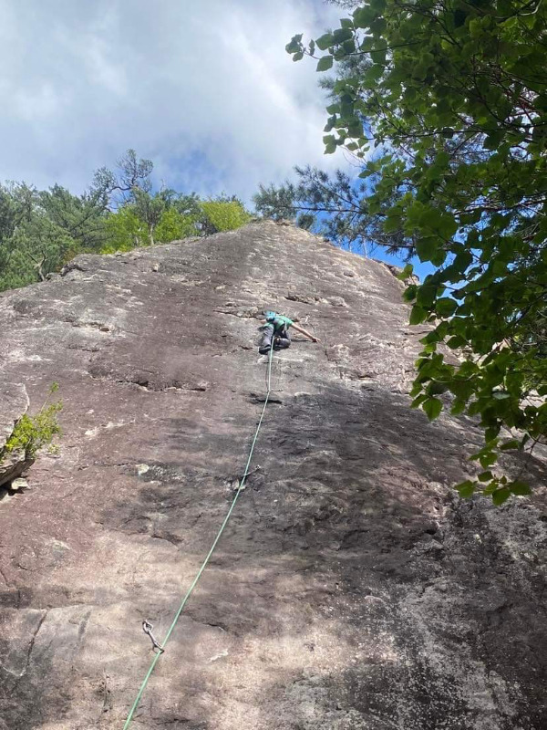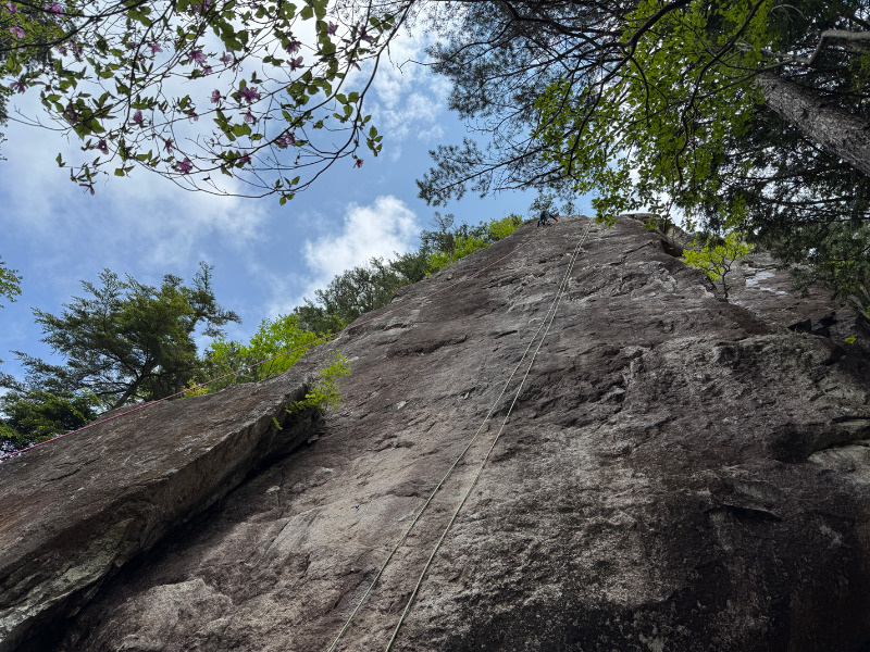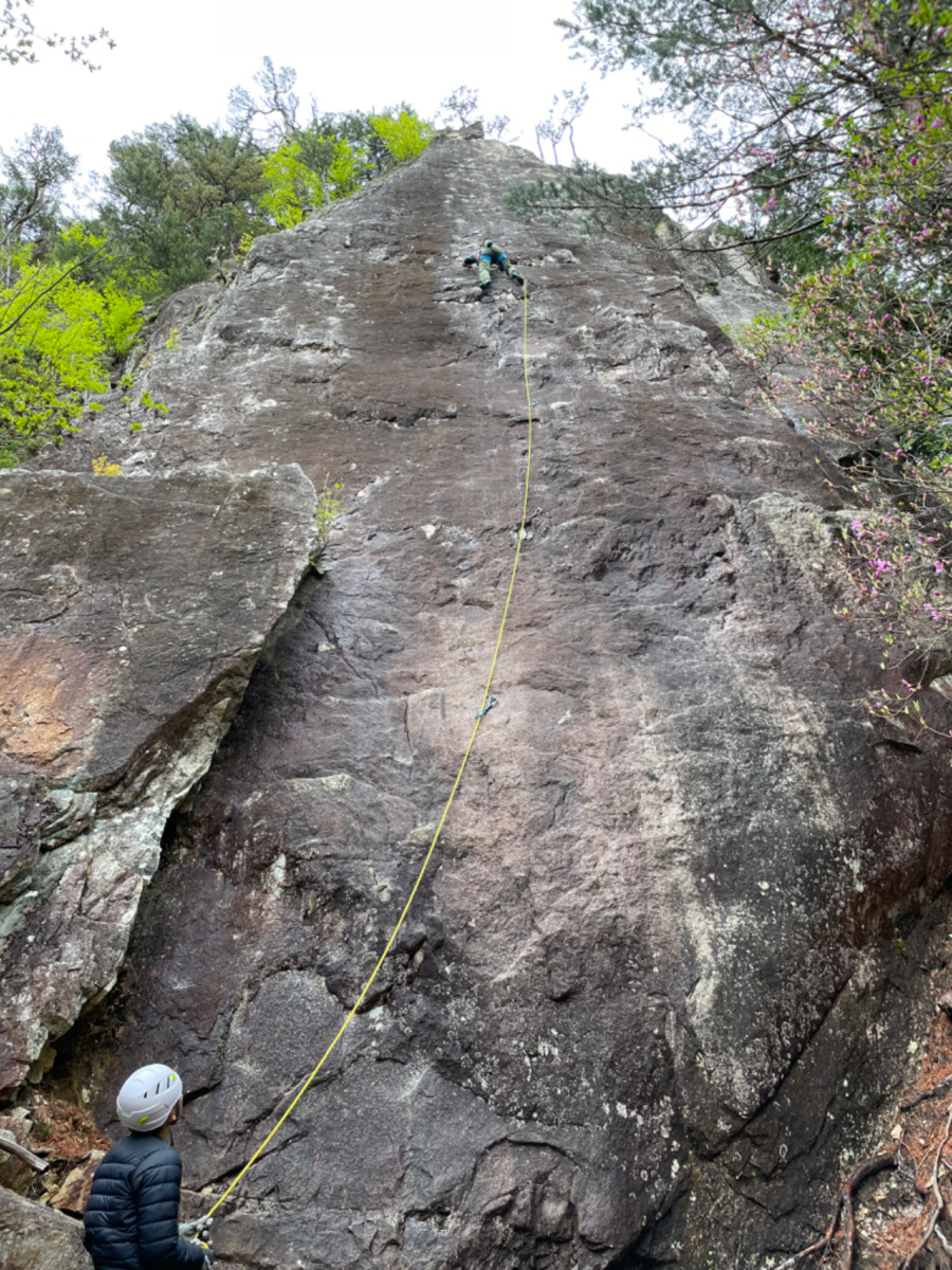 ボルト間隔を含めて、いかにも小川山なルート。景色が良く人気もあるが、初心者向けではない。