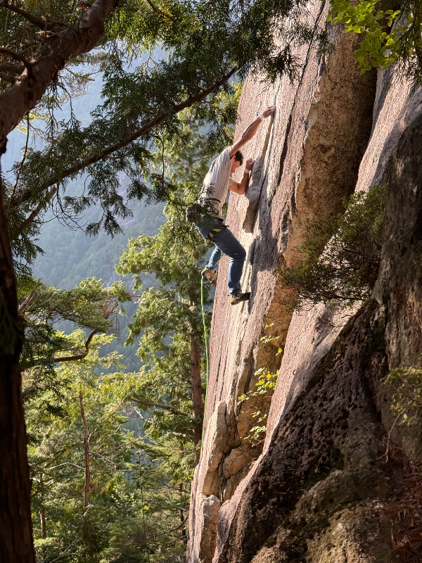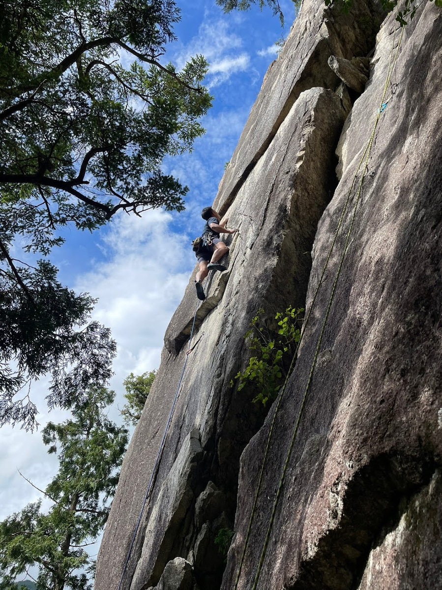 スパッと切れたような綺麗なフェイス面に並んだ明瞭なホールドを繋いでいく課題。 左右にトラバースをする箇所もあるが、ホールド...