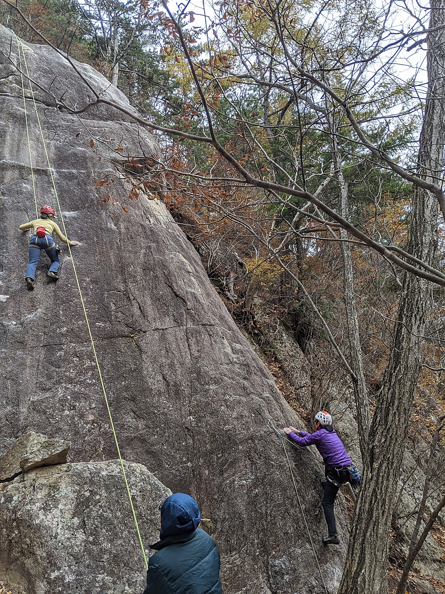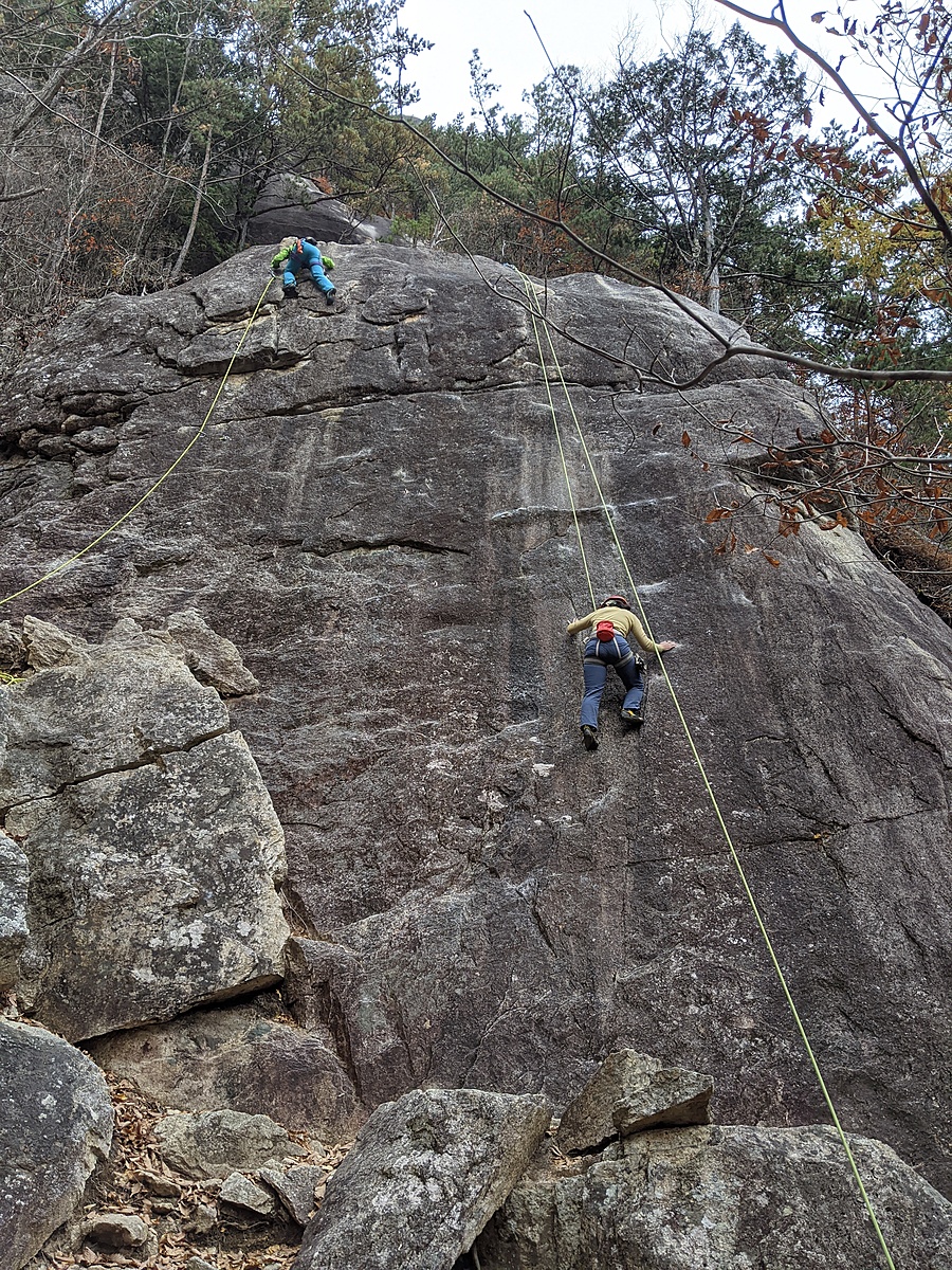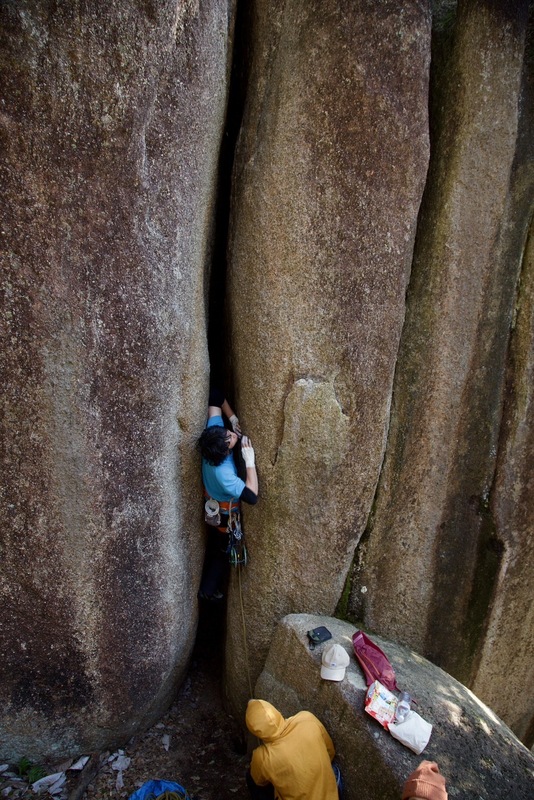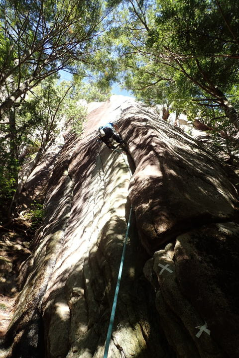 距離も長くてフェイス/スラブと変化にとんだ良い課題だが、 上部(体感5.8程度のスラブ)はかなりランナウトするので覚悟が必要。下を見るとダメなやつ。