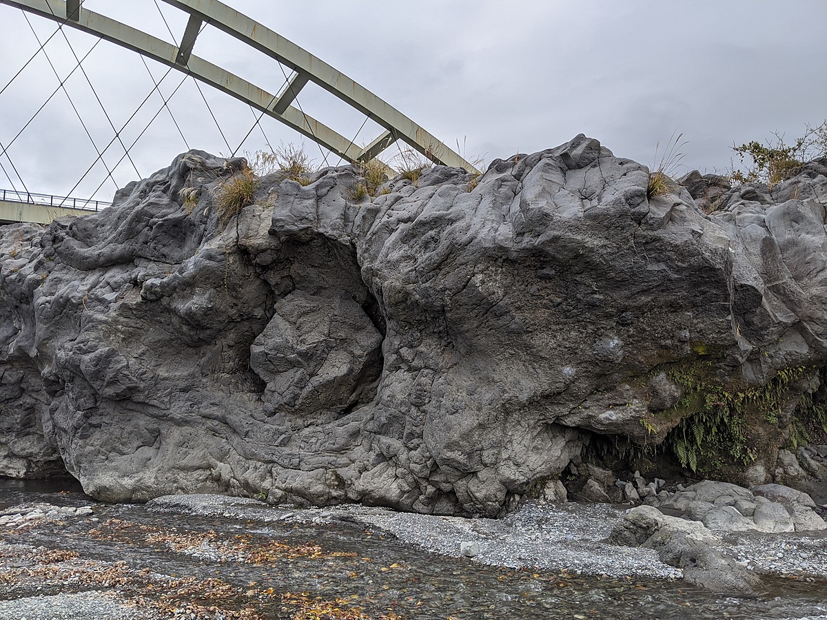 広場より上流側の岩