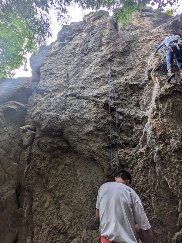 10年前に取りついて登れていないので取り付いてみることに。 2ピン目にクリップしてから水平リスの極小カチから左のガバを取りに行くのが大変。 上部もヨレていると意外といやらしい。