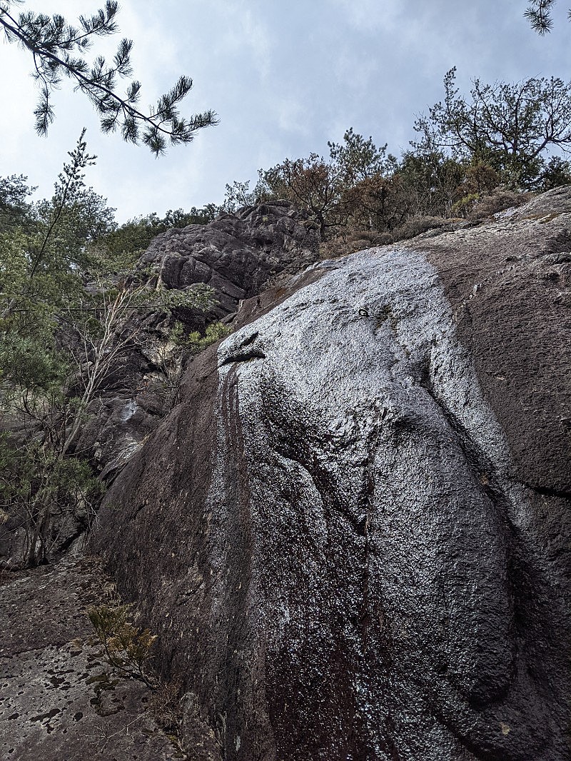 8ピッチくらいをリードでやった。おむすび岩のスラブが全く歯が立たなかった。スラブ力が皆無。最後のちょっとしたクラックもちゃんと登ったが、これが意外に悪かった。懸垂はダブルで一回で降りられる。
