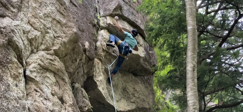 あまりやっている人がいない。核心部はちゃんとムーブを起こさないといけない。そこが地味に強度が高く面白い。オンサイトトライはホールドを見つけられずフォール。体感、ゾウリムシよりは優しい。