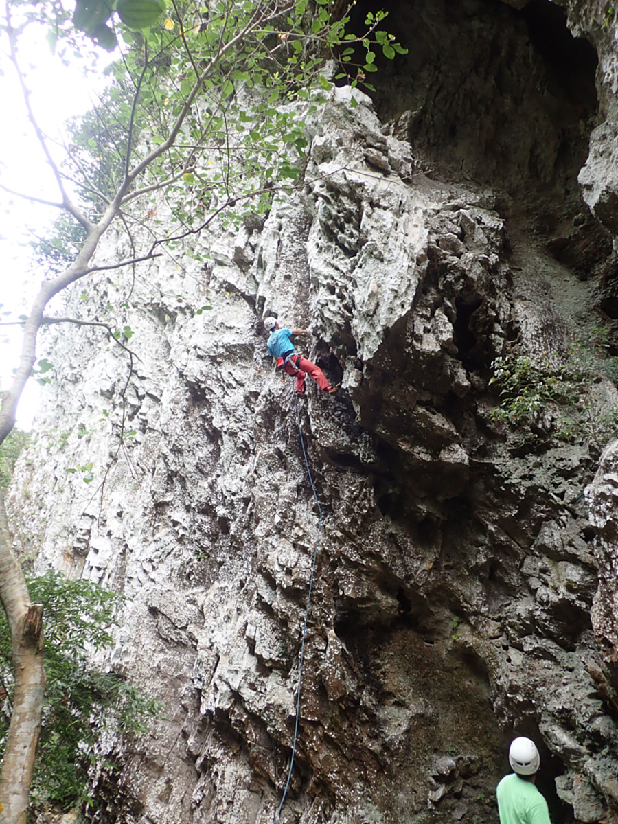 取り付きが分からないが、トポの順番からすると多分これかな?と言う感じ。 ハング下に終了点あります。