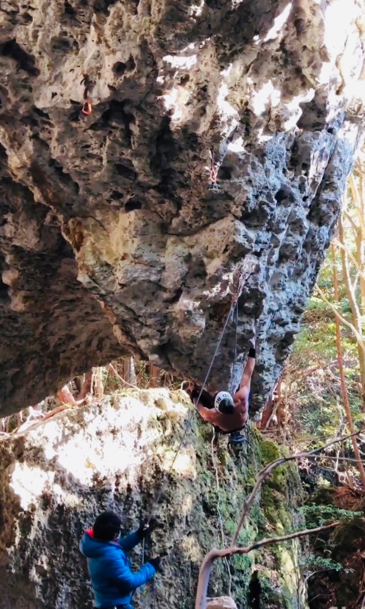 猫も杓子も (5.12c) 鳳来 / 鬼岩周辺 / 河原の広場、ウォームアップエリア