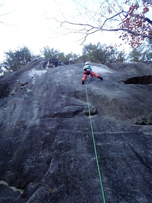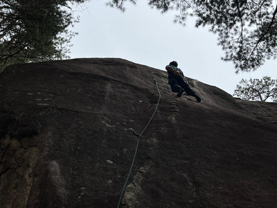 下部が難しい。 ムーブが分かればこのグレードのスラブにしては登りやすい?