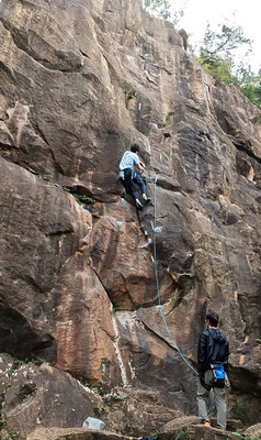 吉田の岩場で1番面白いルート。 中間の核心は細かいホールド。