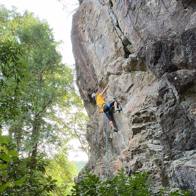 中間部のムーブが特徴的な人気のルートです。そこから終了点直下まで落ちどころが続きます。登ってて楽し...