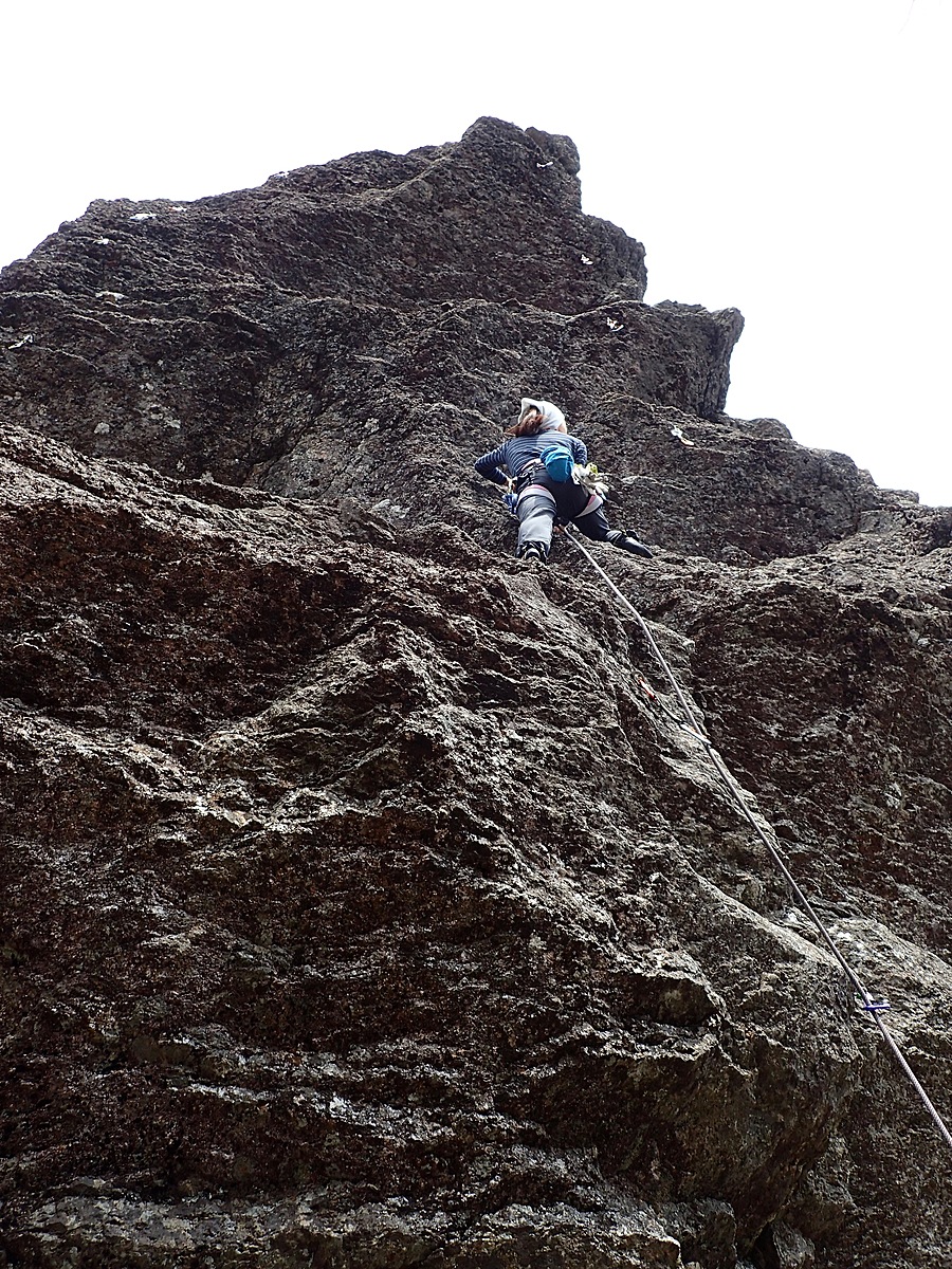 メインウォール中央の凹角を登る。 クラックに出るまでが核心、ワンムーブあり面白い。