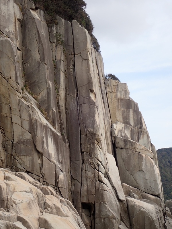 観光客で賑わう門脇灯台。 懸垂下降でテラスに降り立てば見栄えのいいクラックが。 核心は水平クラ...