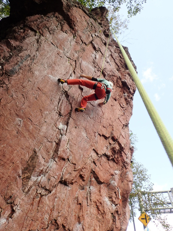 薄かぶりの壁をカチを繋いで登る。小川山の12aでも人気の一本。